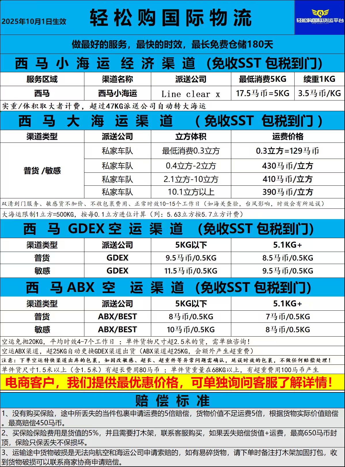 西马GDEX普货空运免sst免抛